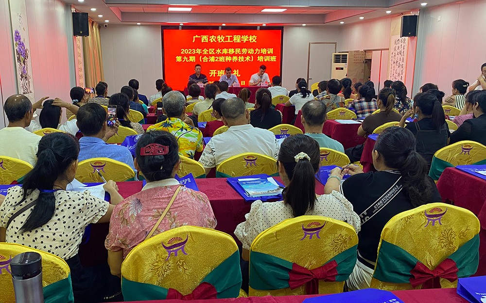 为帮助水库移民掌握农业生产实用技术,提升水库移民的自我发展能力和发家致富本领,9月11日上午,广西农牧工程学校在柳州市民族宾馆举行2023年度全区水库移民劳动力培训项目第九期农业实用技术(北海市合浦县种养技术)培训班开班仪式。