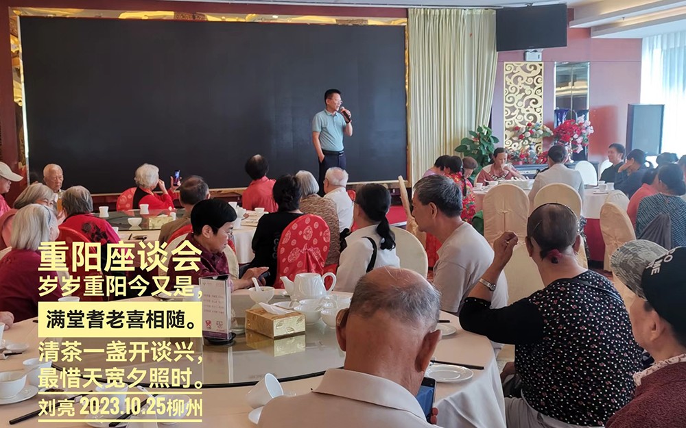 10月25日,我校工会在柳州市华锡大厦召开退休教职工欢庆重阳节座谈会,近70位退休教职工参加。