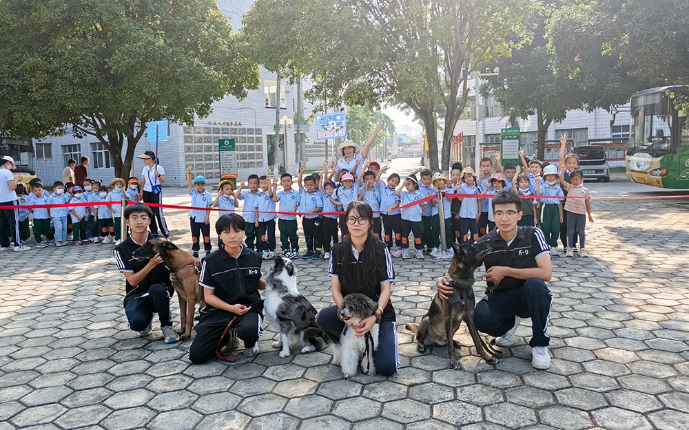 活动第二站来到中心广场,内容是观看我校宠物协会同学们的训狗表演。宠物犬们在训导员的指令下完成了“坐”“握”“立”、花式跳动等动作,一个个精彩的节目赢得了小朋友兴奋的欢呼和鼓掌。
