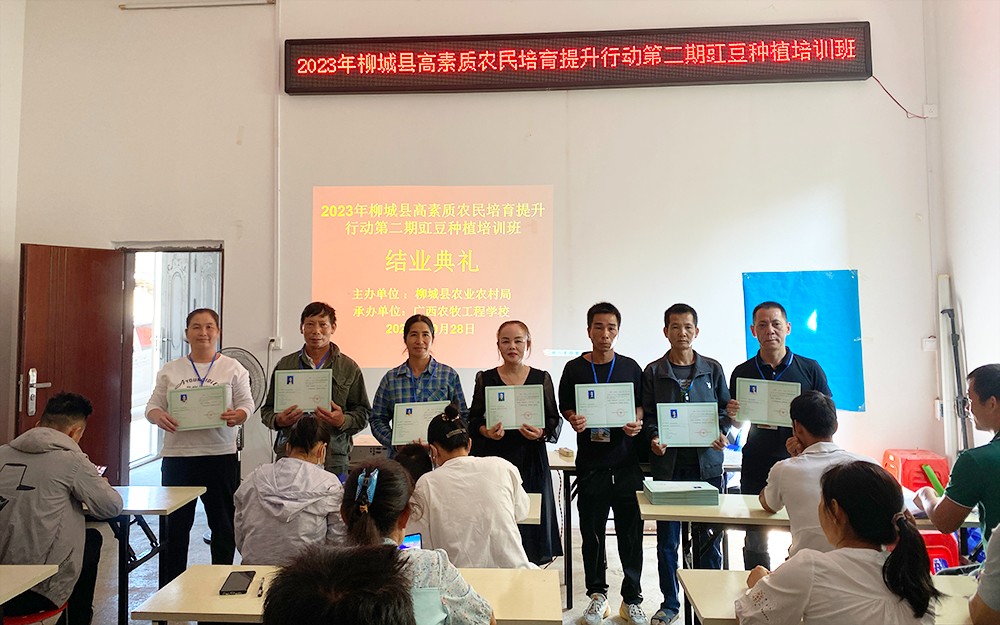 10月28日,为期6天的柳城县高素质农民培育提升行动第二期豇豆种植培训班在柳城县东泉镇推广站培训室圆满结束。