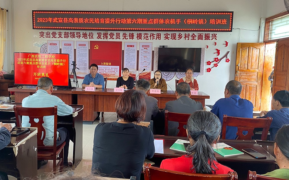11月8日上午2023年武宣县高素质农民培育提升行动第六期重点群体农机手(桐岭镇)培训班在桐岭镇良田村三楼会议室正式开班,培训农机操作手51人。