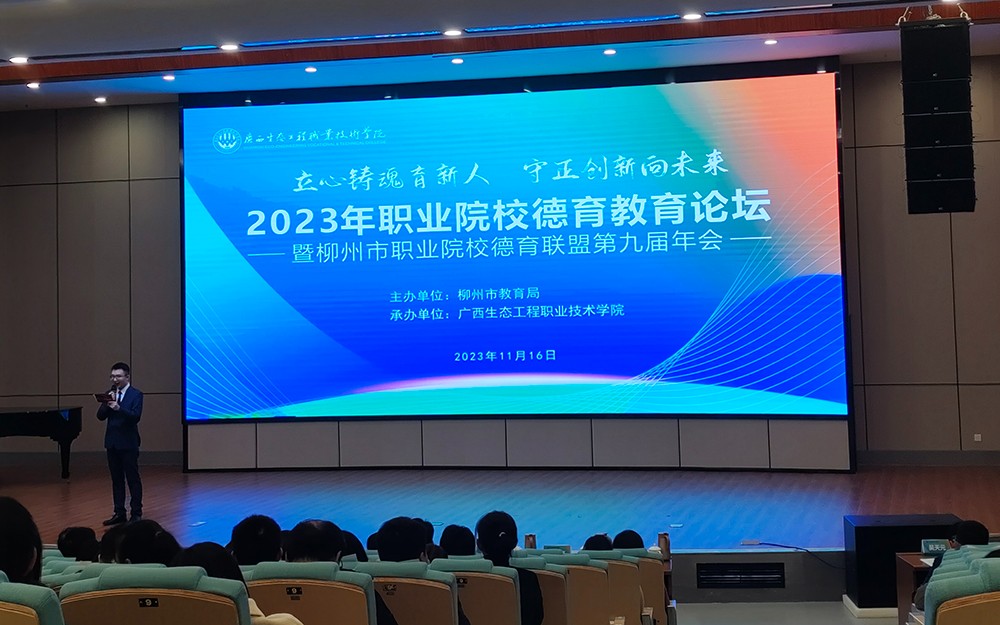 “立心铸魂育新人,守正创新向未来”,11月16日,由柳州市教育局主办、广西生态工程职业技术学院承办的2023年柳州职业院校德育教育论坛暨柳州市职业院校德育联盟第九届年会在广西生态工程职业技术学院顺利召开,我校副校长瞿道航、团委书记常姗姗、学生科副科长吴枫、优秀班主任钟秋雨、唐玉香、周海江老师参加此次年会。