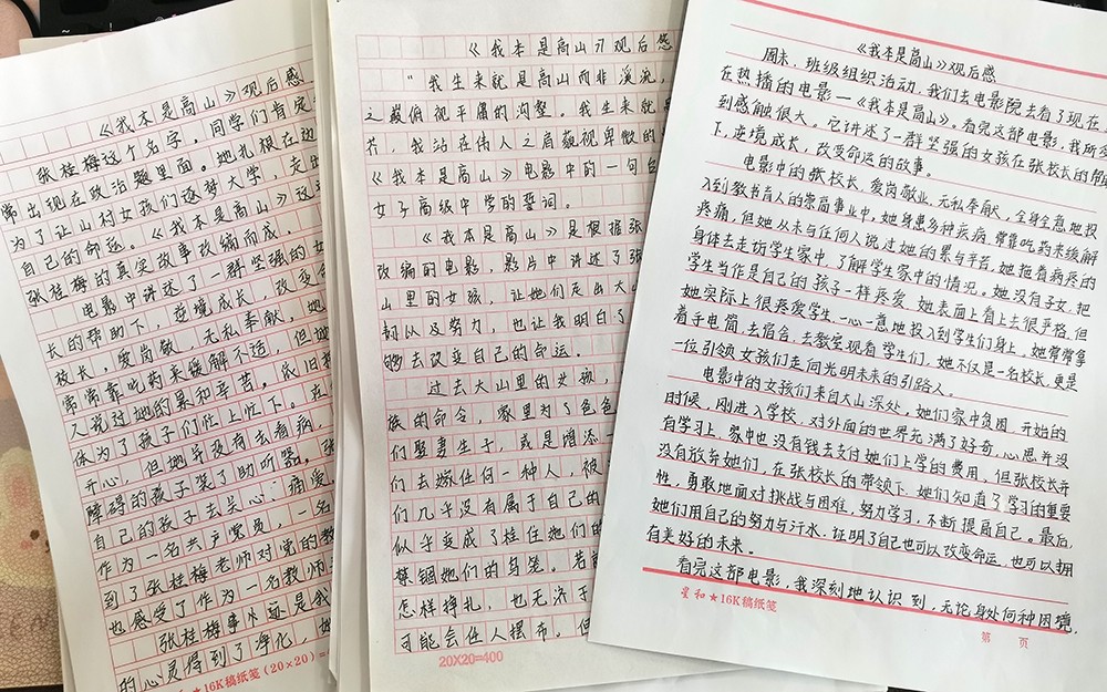 潘韦宏:在看完电影《我本是高山》后,故事的剧情让我深深感动,里面人物、场景也使我深受震撼。女孩们在张桂梅老师的引领下,用自己的坚持和信念考上了大学,让我深刻地认识到,无论身处何种困境,只要有坚定的信念和不懈的努力,就一定能够改变命运实现梦想。同时也让我更加珍惜现在的生活,我要继续不断努力,为自己的未来奋斗。