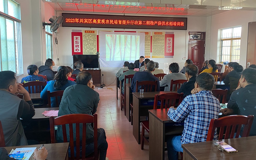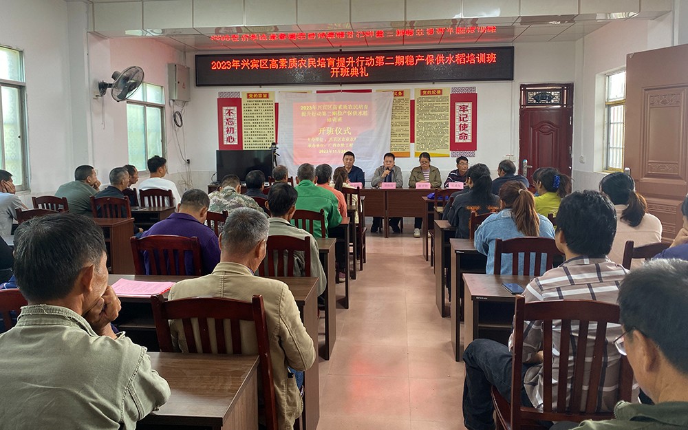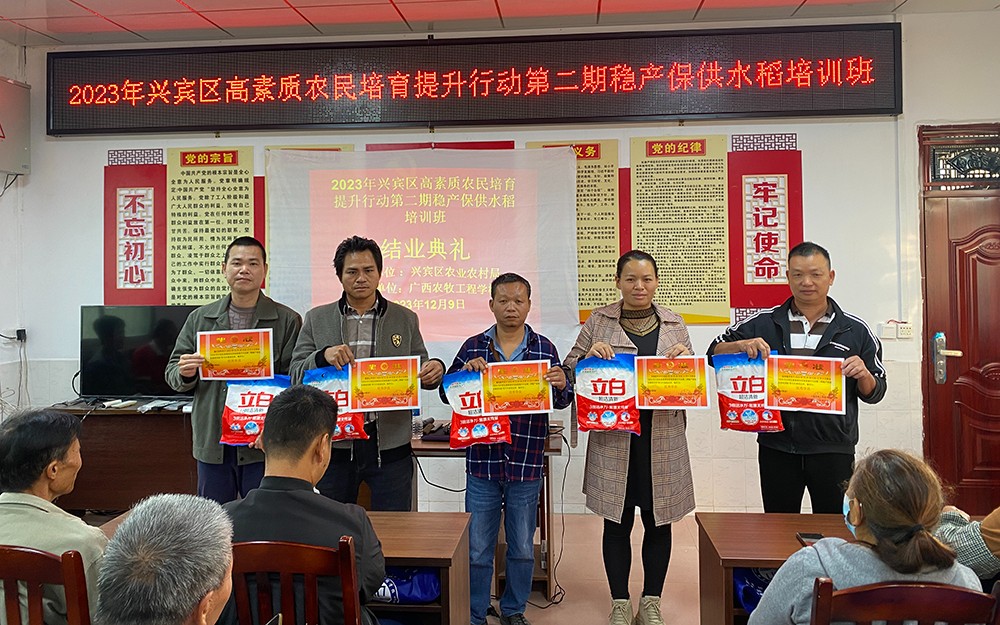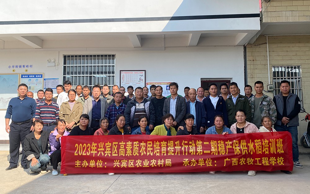 2023年12月9日,由我校承办的“2023年兴宾区高素质农民培育提升行动第二期稳产保供水稻培训班”顺利结业,培训期12天,来自小平阳镇青岭村各村屯52名学员参加培训。