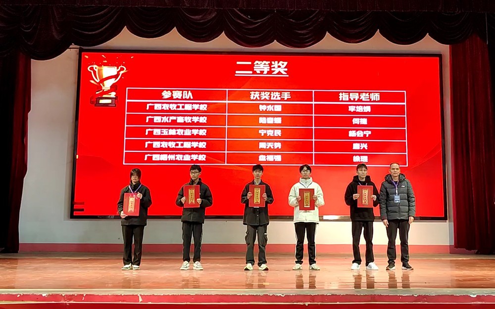 接着,广西现代畜牧业职业教育集团副理事长、我校副校长马翠芳宣布比赛结果。随后,马翠芳、刘镇学,广西现代畜牧业职业教育集团理事长、我校党委书记、校长蒋漓生等分别为获奖选手、优秀指导老师颁奖。