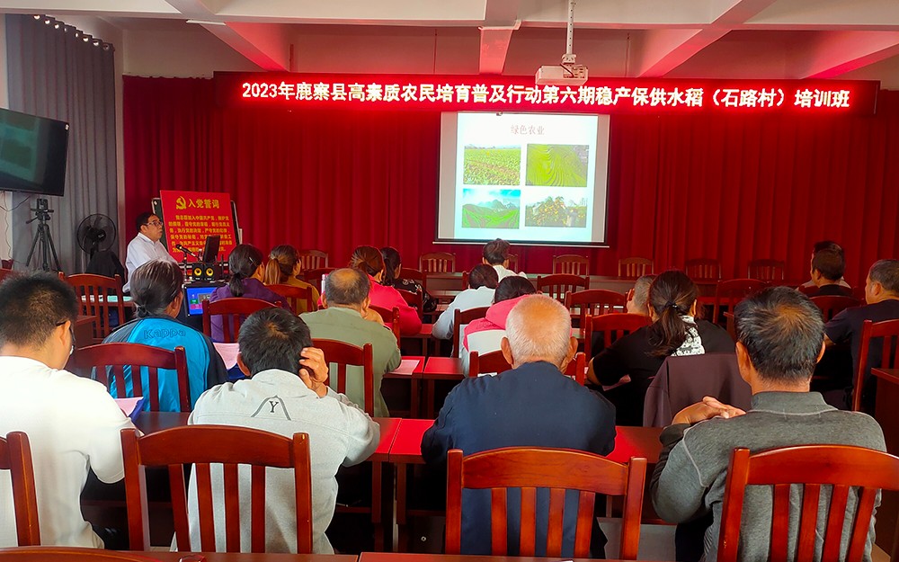 为了让鹿寨县高素质农民学到更多知识和技术经验,我校于2023年11月22日在鹿寨县石路村村委开办第六期水稻种植培训班,来自石路村共52位学员参与了本次培训。