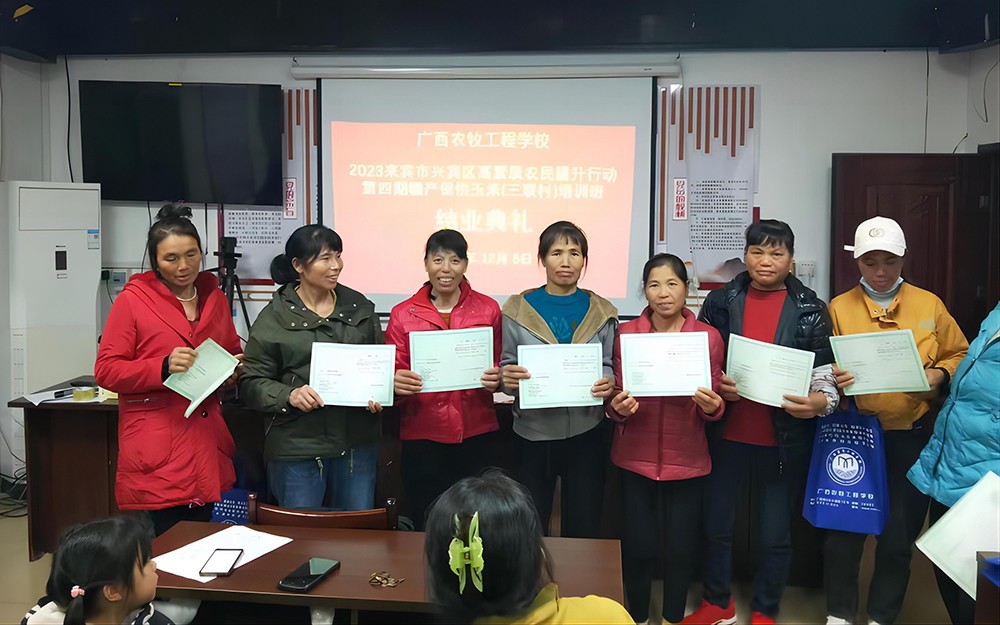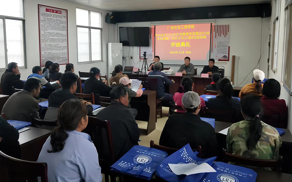 我校在兴宾区农业农村局的带领下,于2023年11月30日在来宾市兴宾区三联村村委开办第四期稳产保供玉米种植培训班,来自三联村共55位学员参与了本次培训。