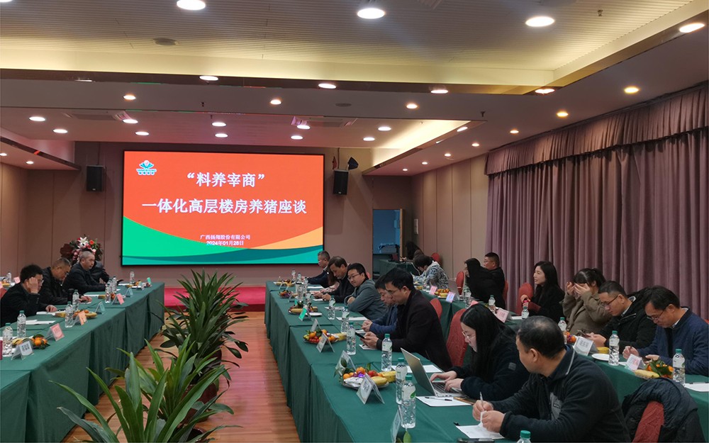 广西扬翔股份有限公司高远飞副总裁在园区现场为与会专家介绍了“料养宰商”一体化园区概况,参观了猪场饲料供应系统、环保工艺流程及楼房智能化养猪设备设施及生产环节;并与专家一起就《现代设施养猪业的探索》及《6160头母猪规模楼房养猪模式介绍》进行研讨,大家从养猪趋势、楼房养猪、智能化养猪、猪场建筑总体规划、养殖工艺流程、环保工艺流程、生产经营指标、投资概算等进行了详细论证。与会专家对“料养宰商”一体化高层楼房养猪模式给予充分认可,并对扬翔公司提供的考察学习机会表示由衷感谢。