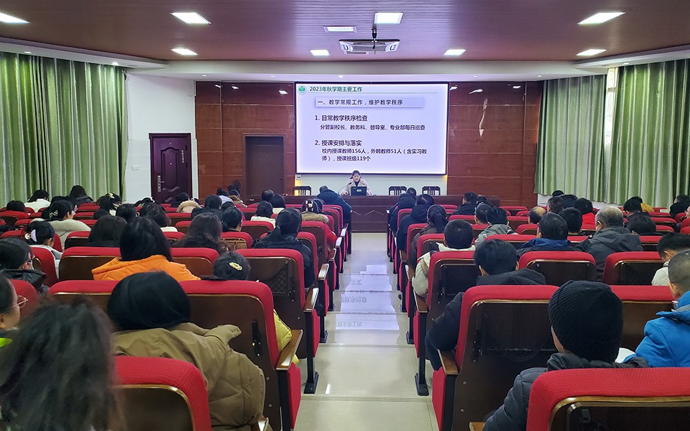 2月24日下午,我校召开2024年春学期开学教学人员会议,安排部署新学期教学工作。本次大会由教务科负责人王彩云老师主持,全体教学人员参会。