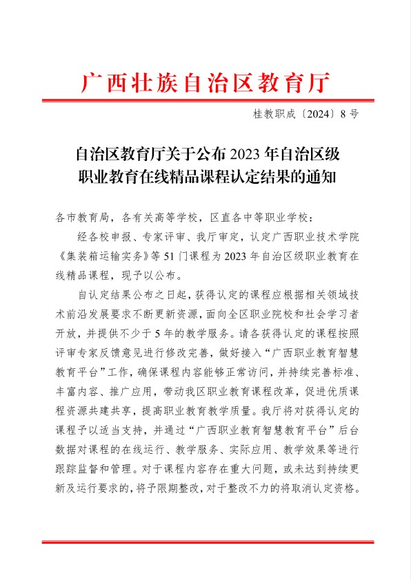 目前,我校已有1门国家级在线精品课程、2门自治区级职业教育在线精品课程、2门东盟国际化职业教育课程、5门东盟国际化培训资源包。