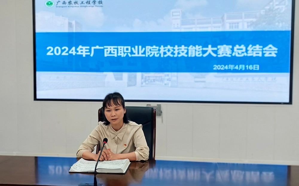 4月16日下午,我校在视频会议室召开了2024年广西职业院校技能大赛总结会。学校副校长马翠芳、各专业部负责人及18个参赛项目的指导老师参加会议,会议由教务科负责人王彩云主持。