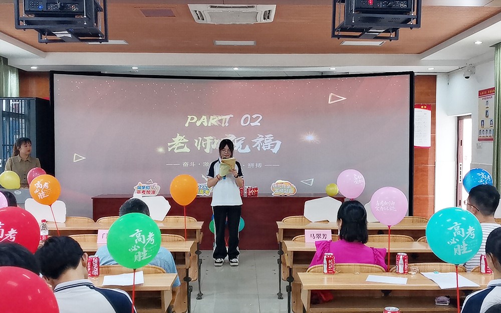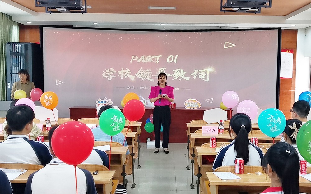 甘桂泉同学代表学生发言,她表示:除了冲刺,我们无路可退。既然选择了高考,我们就没有理由退缩。要在战略上藐视困难,战术上重视问题,有信心才有动力。相信拿到录取通知书的那一刻,我们会发现,这个夏天很有趣,西瓜很甜,努力很值!闯过布满暗礁的海,不负青春、不负韶华。