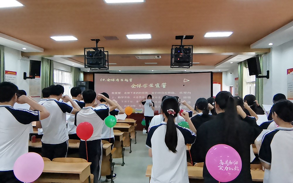 最后,全班同学进行庄严宣誓,在宣誓中展现出了高昂的斗志和坚定的信念,他们齐声呐喊,誓言要在接下来的时间里全力以赴,冲刺高考,实现自己的梦想。
