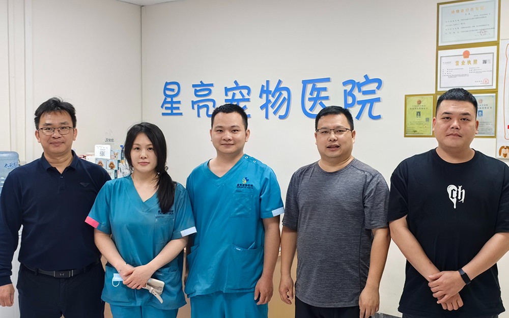 我校教师阙晓南(右二)与星亮宠物医院的员工合影