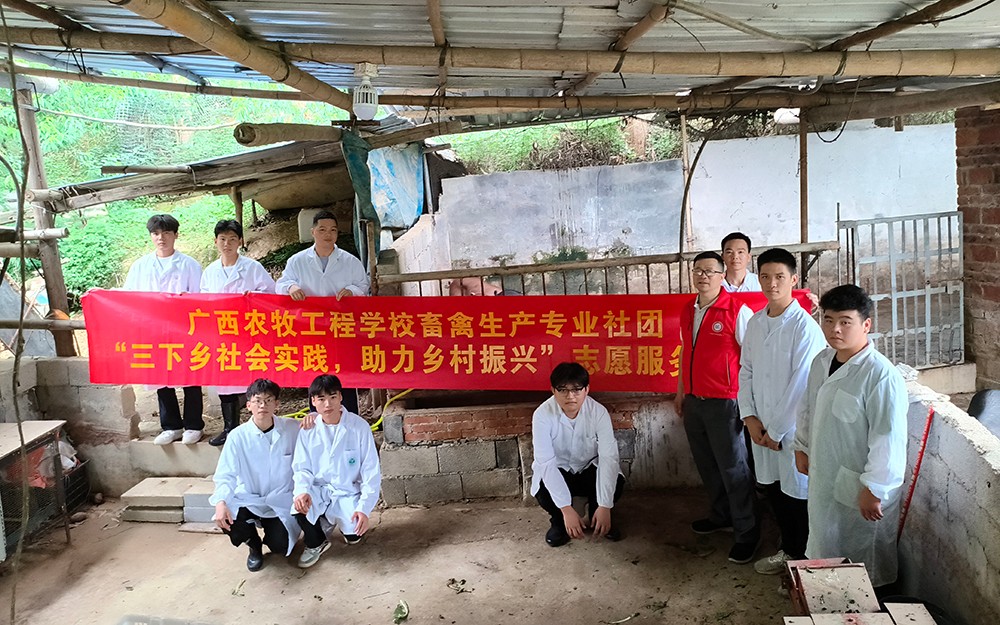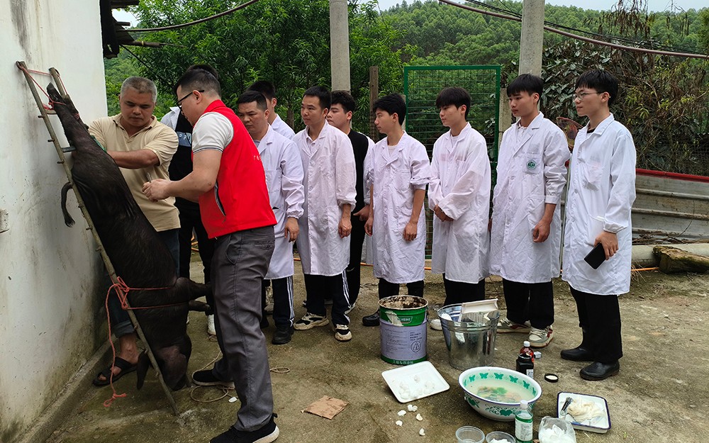为让广大青年学生更好的理论结合实践,深入了解乡村养殖业发展现状、了解乡村、热爱乡村、助力乡村振兴。4月28日,我校团委组织开展“三下乡社会实践,助力乡村振兴”志愿服务实践活动。我校科技特派员、兽医协会指导老师刘佑东带队兽医协会10名同学到柳州市长塘镇玉萌山休闲农庄开展阉猪技术服务。期间,刘老师针对饲料生产管理等方面存在的突出问题和技术需求也进行了分析及指导,并为农户讲解饲料防霉防变技术等养殖技术,以切实有效的技术服务为乡村振兴赋能发挥积极作用。