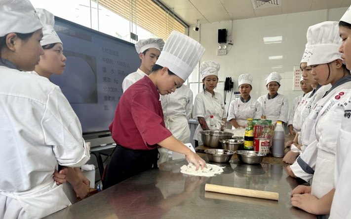 2024年5月11日下午,我校中餐烹饪课程(群)教学团队青年教师韦美椰在畜产品加工基地多功能实训室开展了一堂精彩的公开课。公开课的教学内容是“月牙饺的制作”,教学形式是理实一体化教学,重点展示了学习通等新的信息技术在中餐烹饪课程教学中的应用。