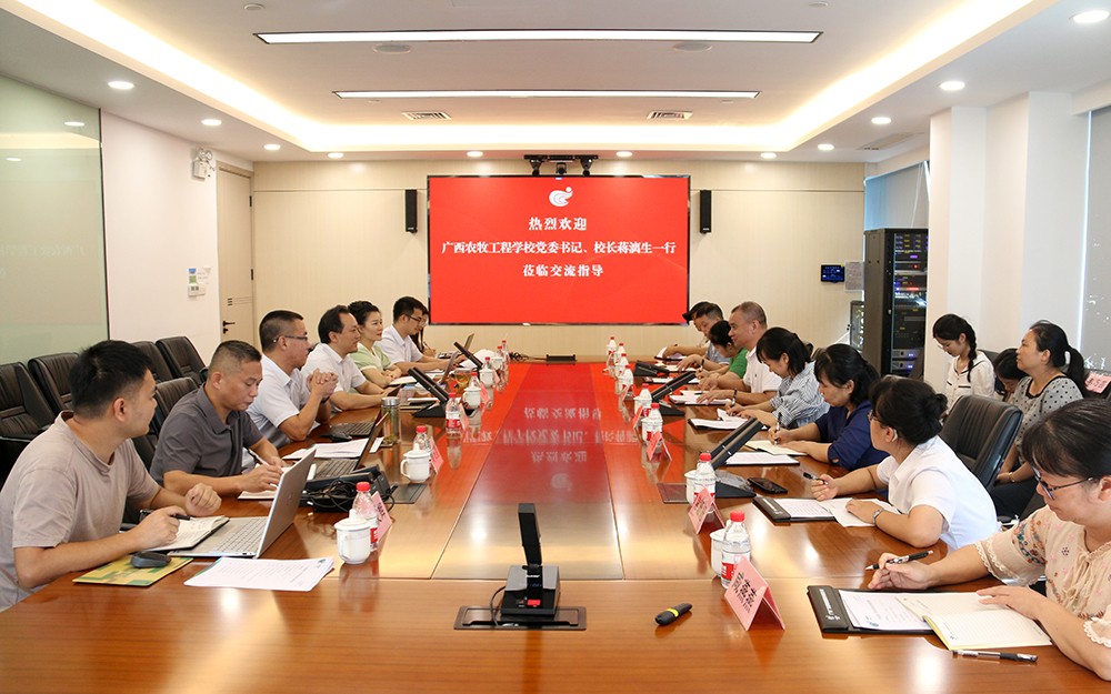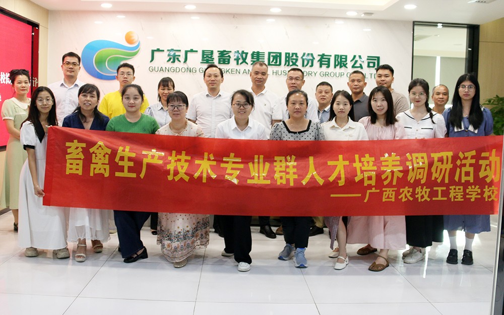 为了解行业发展趋势和企业人才需求,完善畜禽生产技术专业群人才培养方案研制,做好优质专业群建设,2024年 7月23日下午,我校畜禽生产技术专业群建设团队一行12人在学校党委书记、校长蒋漓生带领下,前往广东广垦畜牧集团股份有限公司调研走访。