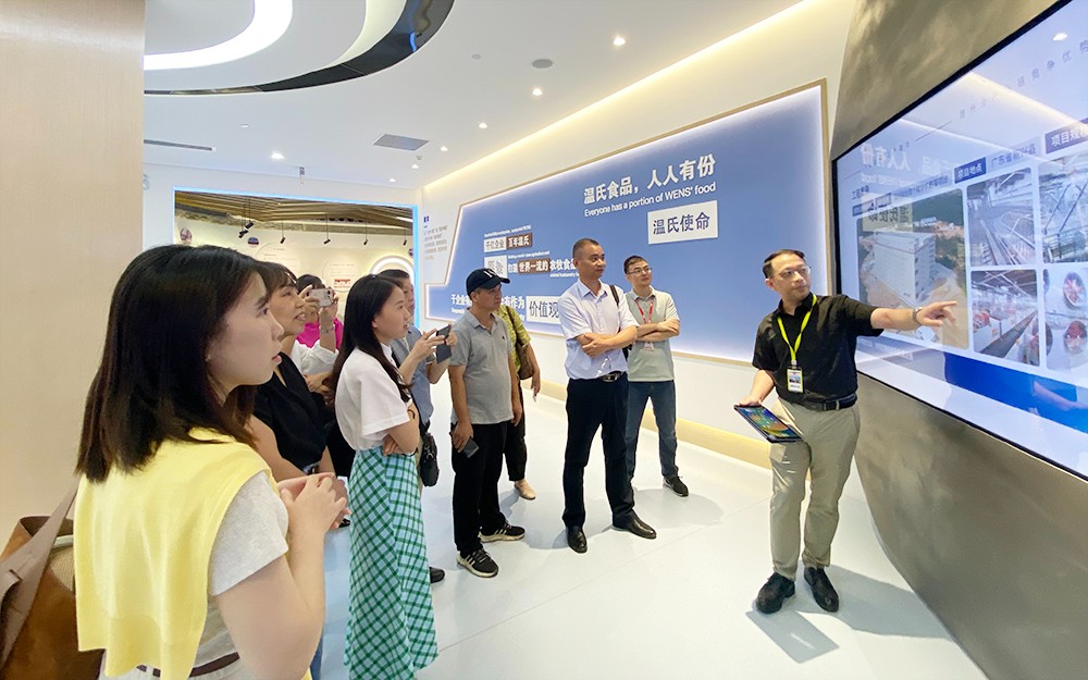 调研团队首先参观了温氏集团的企业展示馆。通过实地参观,调研团队对温氏集团的创建与发展历程、主营业务板块、全产业链建设情况及未来发展规划有了更加全面和深入的了解。