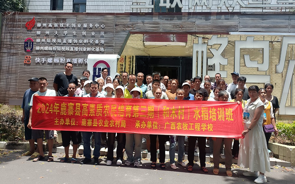 7月13-18日,由鹿寨县农业农村局主办,我校承办的2024年鹿寨县高素质农民培育第八期(全坡村)水稻培训班在四排镇和木村开班,共58名学员参加培训。