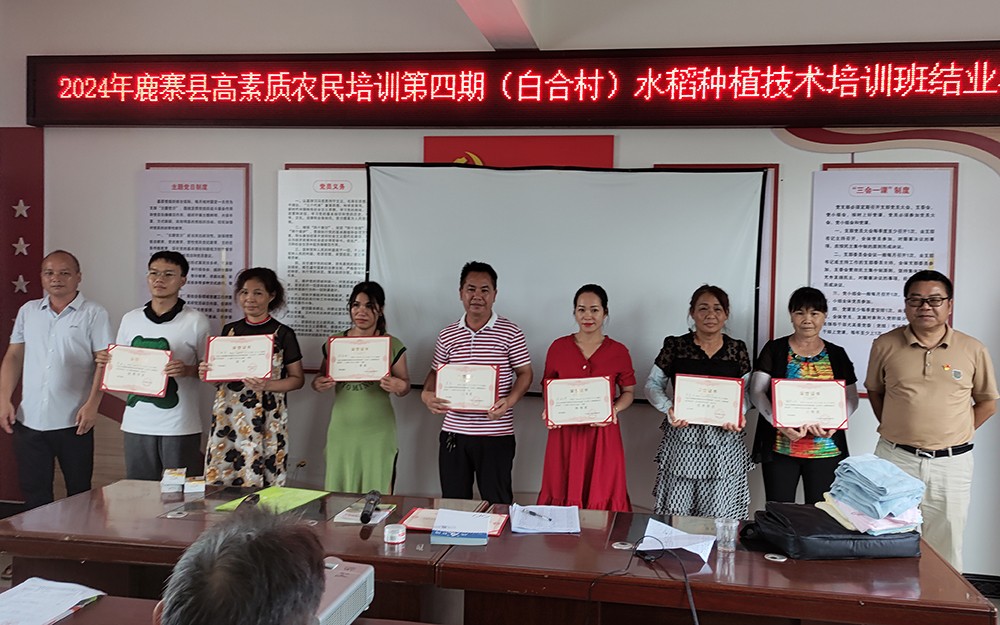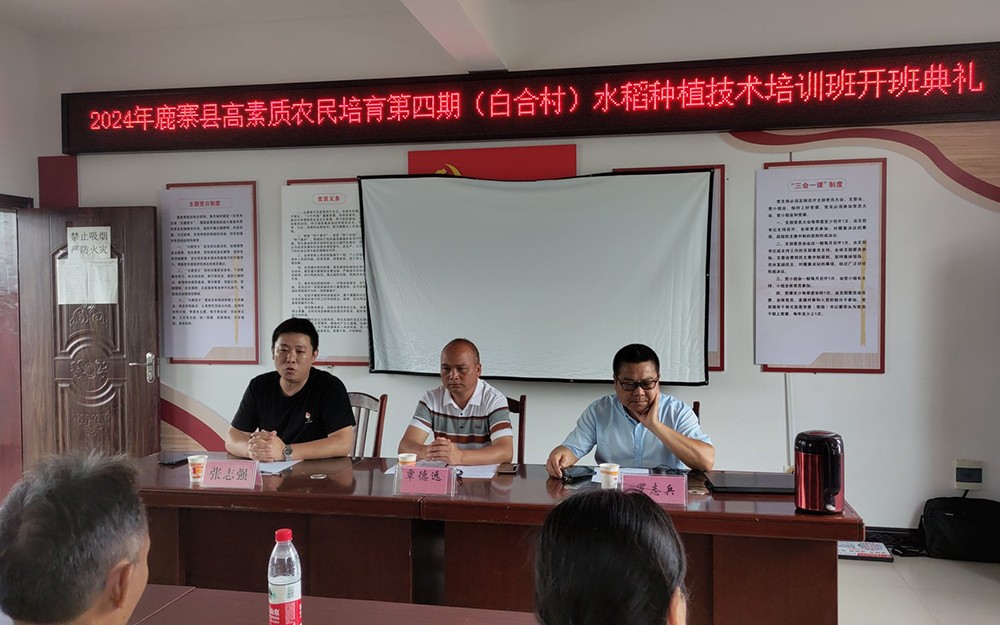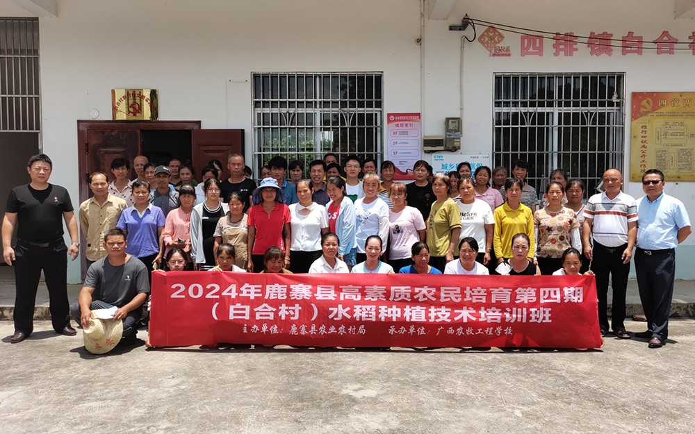 由我校承办的2024年鹿寨县高素质农民培育第四期(白合村)水稻种植技术培训班于7月14日在鹿寨县四排镇白合村委开班,来自白合村屯的58名水稻种植大户参加了此次培训。