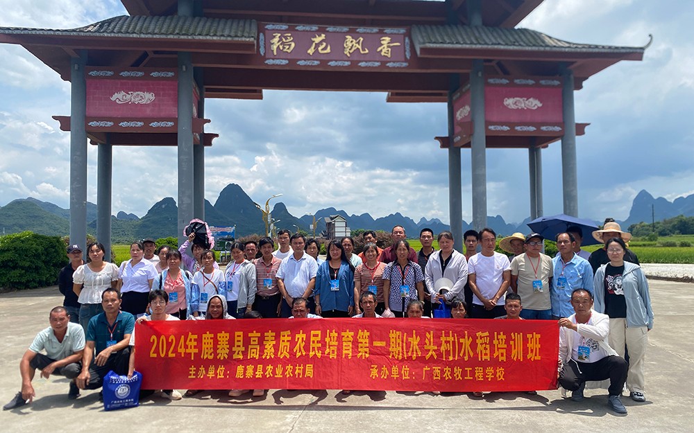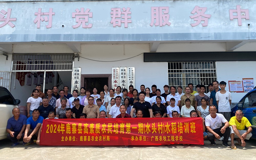 于是,2024年7月11日,由鹿寨县农业农村局主办,我校承办的“2024年鹿寨县高素质农民培育第一期(水头村)水稻培训班”,在鹿寨县四排镇水头村顺利开班,培训班通过与专业农业科研机构合作,确定了培训内容和方式。课程涵盖了现代农业技术、科学施肥、病虫害防治等方面,确保了培训的实用性和针对性。其次,为了提高培训效果,特别邀请了资深农业专家和成功农民作为讲师,分享他们在实践中积累的经验和技巧。这不仅增加了培训的权威性,也激发了农民学习的积极性。