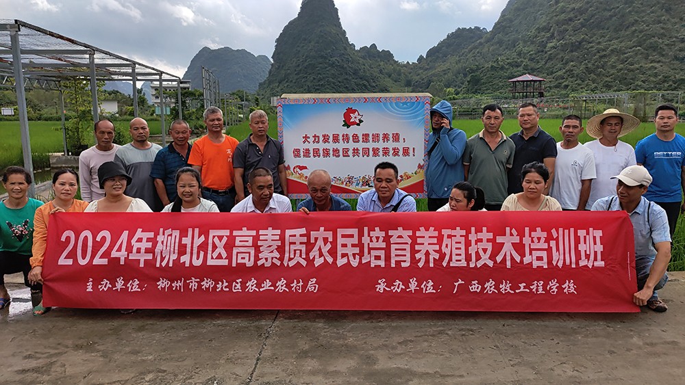 为推动柳州市柳北区特色养殖业高质量发展,8月9日,由我校承办的2024年柳北区高素质农民培育养殖技术培训班顺利结业,30名养殖户参加了此次培训。培训班历时线下学习12天96学时,线上学习24学时,旨在加强产业规范化建设,助推乡村振兴。