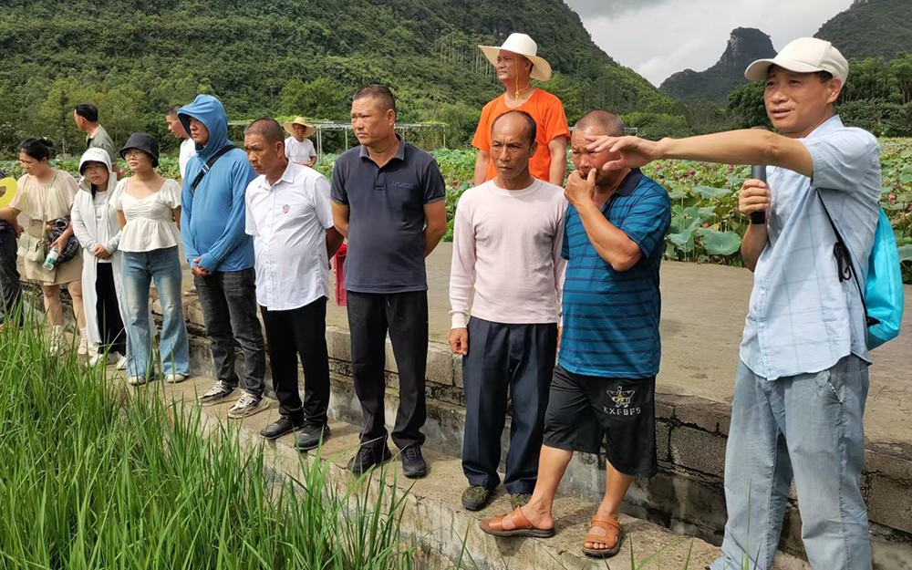 培训班特邀请了柳北区农业农村局叶统政高级农艺师解读中央一号文件;广西科技大学生物医学部联合研究员蒋治授课乡村振兴促进法、金边蚂蟥养殖技术;柳州市渔业技术推广站、农业技术推广研究员杨军授课稻田养鱼、养螺蛳、养虾等综合养殖技术;我校潘立老师授课特色养殖犬类养殖技术;伍国荣老师授课养牛学、牛病防治等。通过集中授课、案例分享、交流座谈、示范基地观摩、田间现场教学相结合的授课方式,紧紧围绕柳州螺蛳粉产业现状,做好前期市场预测;畜禽常见病药物使用量及使用方法,有效科学防控。学员们与授课教师积极交流,学习讨论种养+技术,疫病预防与处置方法,课堂气氛活跃、热情高涨,受益良多。