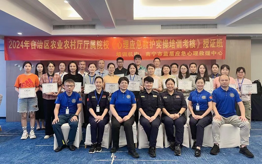 在当前社会环境中,职校学生面临着学业压力、职业规划、人际关系等多重挑战,其心理健康问题日益受到关注。为了提升职校教师的心理危机应对能力,增强学生的心理素质和自我调适能力,我校教师参加由农业农村厅主办、南宁市蓝盾应急心理救援中心协办的“心理应急救援培训授证班”。本次培训旨在通过专业知识传授与实操演练,构建校园心理安全网,为学生健康成长保驾护航。