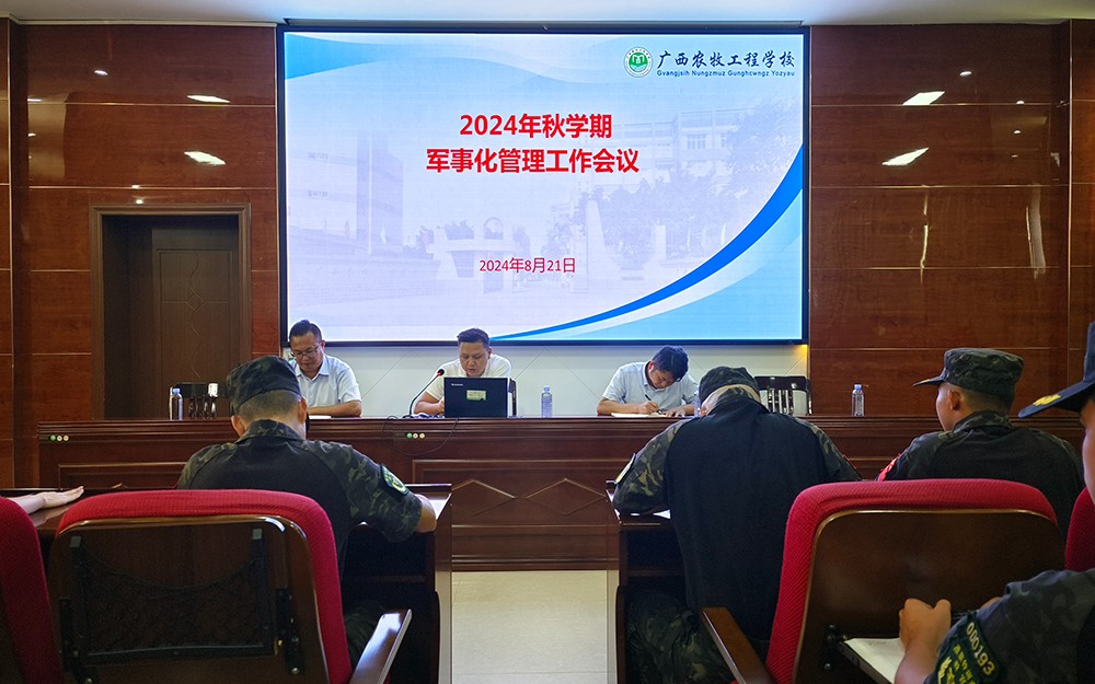 随着新学期的钟声即将敲响,为进一步强化学生纪律性,提升校园军事化管理水平,我校于8月21日下午召开了2024年秋学期军事化管理工作会议。本次会议由学生科副科长吴枫主持,学生科科长何程、柳州战狼文化传播有限公司总经理孙官和全体教官参加,共同回顾过去,展望未来,为新学期军事化管理工作的顺利开展奠定了坚实基础。