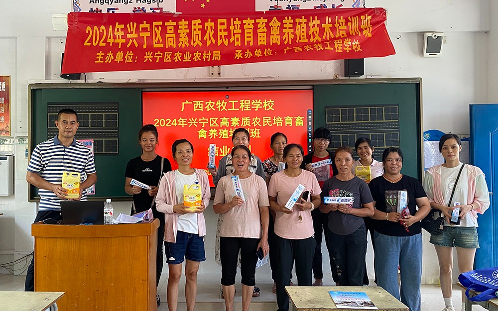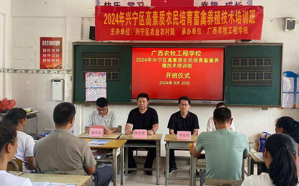 2024年8月20日,我校在广西南宁市兴宁区举办2024年高素质农民畜禽养殖型培训班顺利开班。来自个三个乡镇、街道的养殖企业、合作社、养殖大户、动物防疫员等61名学员参加培训。