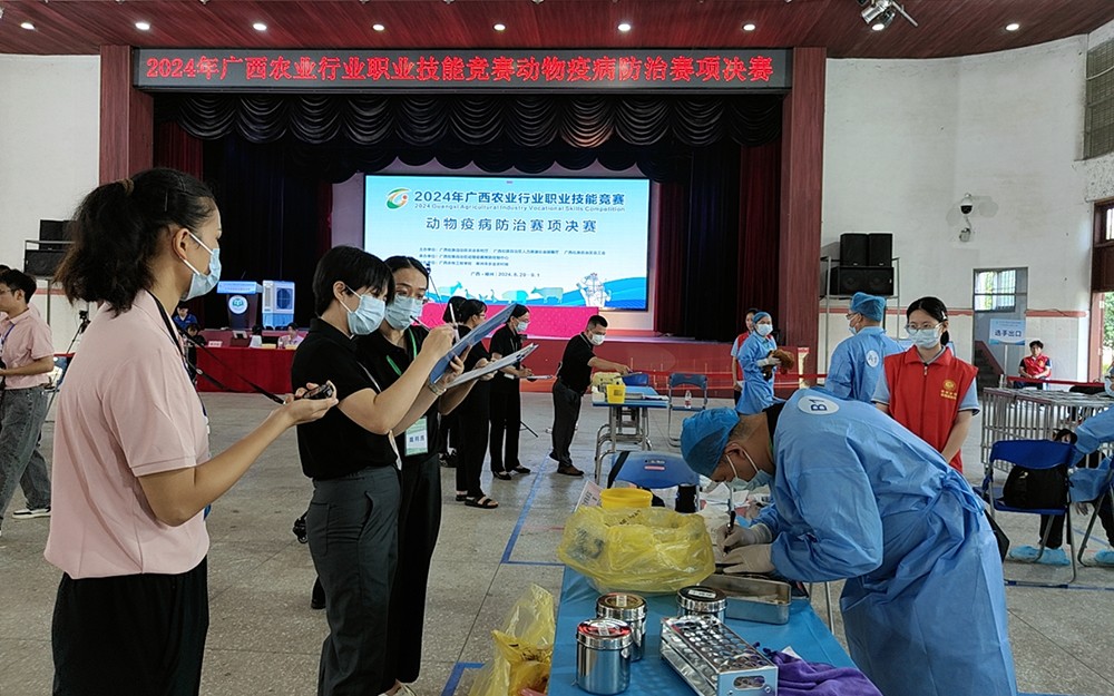8月30日至31日,2024年广西农业行业职业技能竞赛——动物疫病防治赛项决赛在我校成功举办,来自全区14个地市的42位选手参加比拼。经过理论知识考试和实操比赛,玉林市、河池市和柳州市参赛队分别获得团体总分前三名。