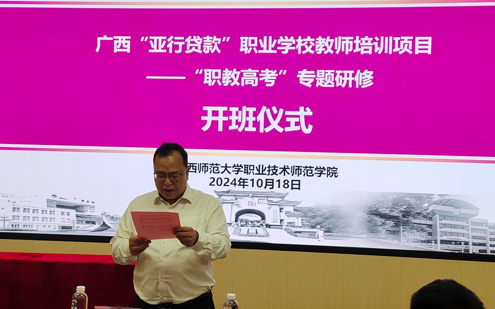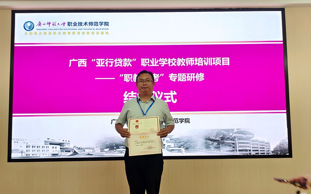 2024年10月17日至24日,职业学校教师培训项目——中职“职教高考”专题研修班在桂林市举办。培训班由广西师范大学职业技术师范学院承办,来自全区中等职业学校100名教师参加本次培训,我校派出吴枫老师参加了此次培训。