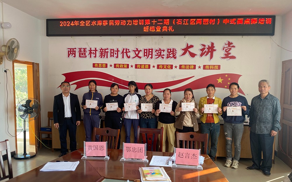 2024年10月30日,我校承办2024年全区水库移民劳动力培训第十二期(百色市右江区两琶村)中式面点师培训班正式开班。共有52名水库移民参加培训。
