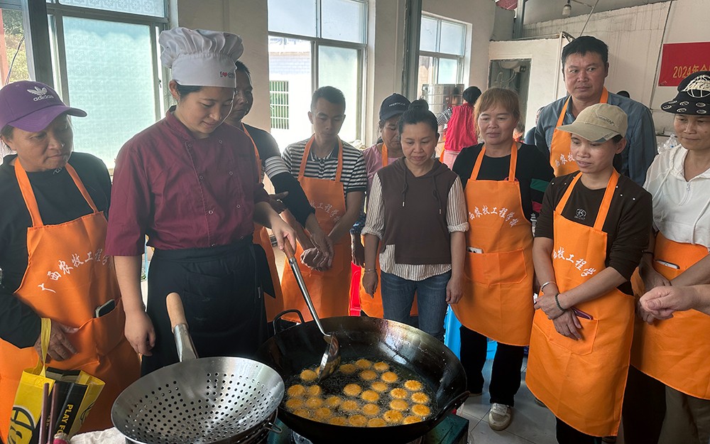 近日,我校在百色市右江区阳圩村开展2024年全区水库移民培训第十一期(右江区阳圩村)中式面点师创业就业技能培训班,学员49人参加此次培训。