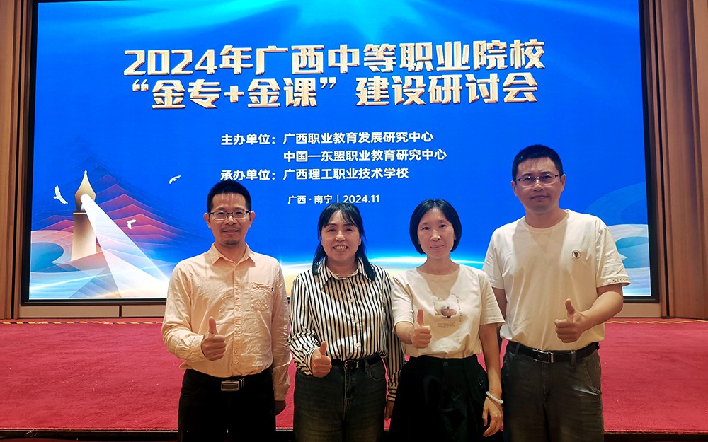 2024年11月15日我校李华慧、潘立、罗龙兴和秦荣香四位老师参加了广西职业教育发展研究中心、中国-东盟职业教育研究中心在南宁主办的“2024年广西中等职业院校‘金专+金课’建设研讨会”。