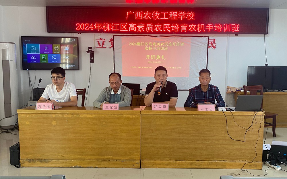 2024年11月8日,我校承办柳江区2024年农机手技能培训班在穿山镇开班。培训班为期6天,培训学员31人。