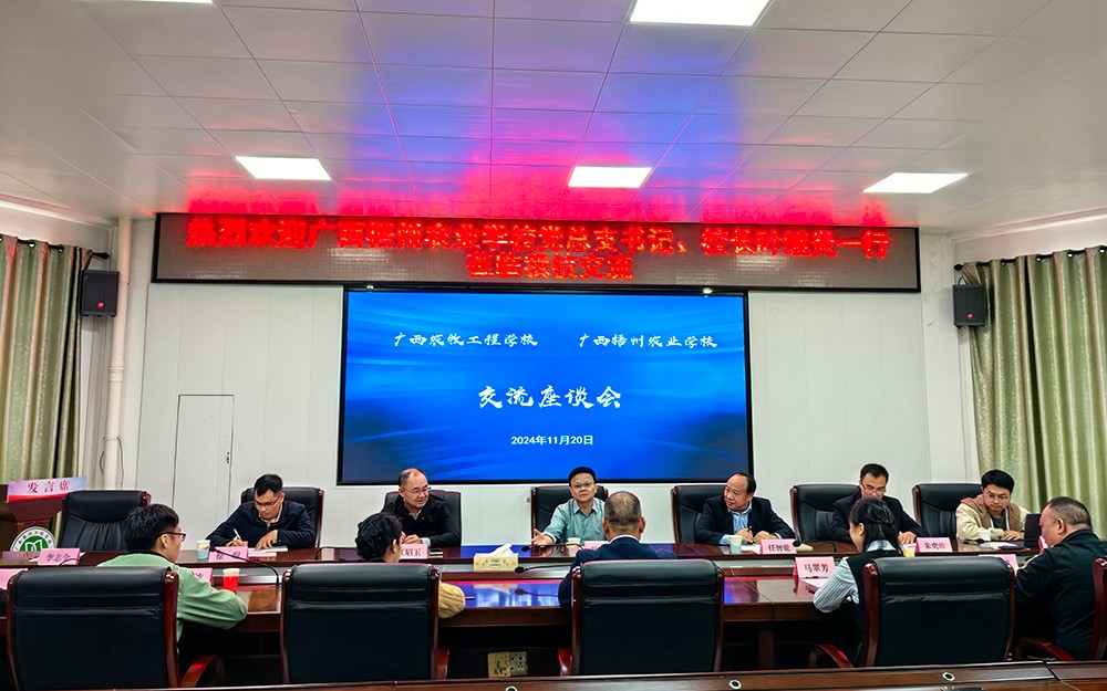 11月20日,广西梧州农业学校党总支书记、校长叶继炎一行7人到我校就优质学校、优质专业及虚拟仿真实训室、智慧猪场实训中心建设等议题展开深入交流。我校党委书记、校长蒋漓生同志,副校长马翠芳同志出席了本次活动。