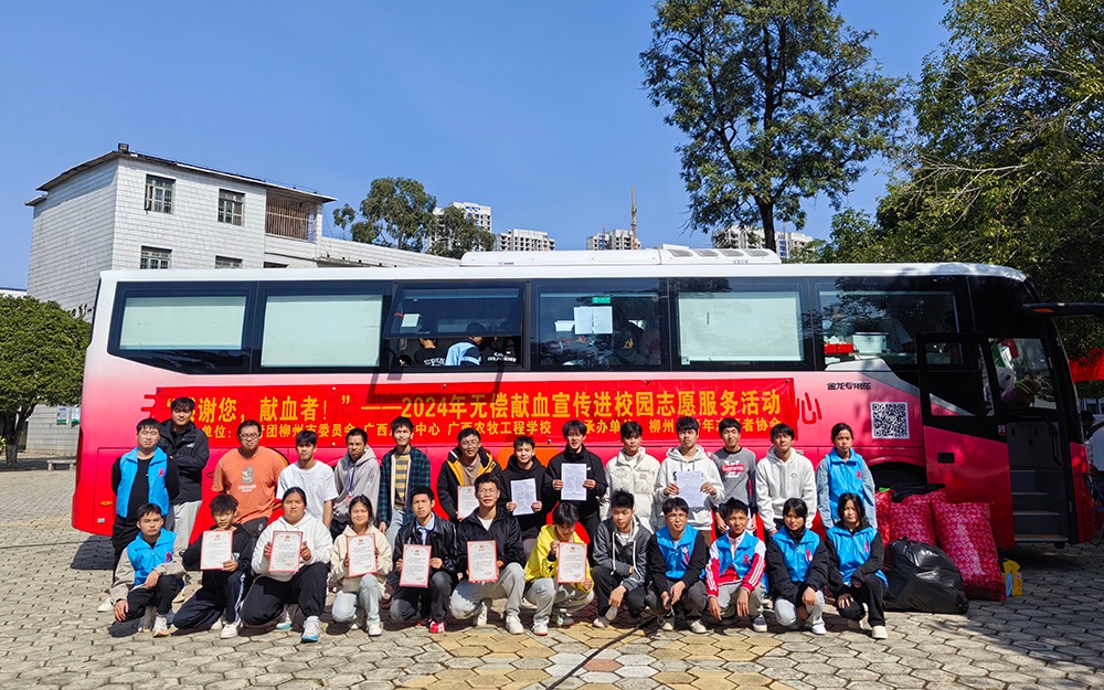 奉献热血,让世界充满爱。11月26-27日,由共青团柳州市委员会、广西血液中心、广西农牧工程学校的联合举办的“感谢您,献血者”--2024年无偿献血宣传进校园志愿服务活动在我校顺利开展。我校广大师生积极响应,用爱心传递温度,用热血书写青春,共有183名师生成功捐献爱心血液56200毫升。