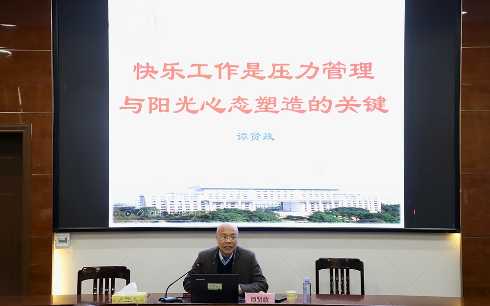 为提升教师心理健康水平和专业素养,预防职业倦怠,缓解工作压力,培养积极情绪。12月10日下午,我校特邀广西大学硕士研究生导师、心理学博士、教育部心理培训专家谭贤政教授作“快乐工作是教师阳光心态构建的关键”的专题讲座。学校党委书记、校长蒋漓生及全体教学人员参加本次讲座。