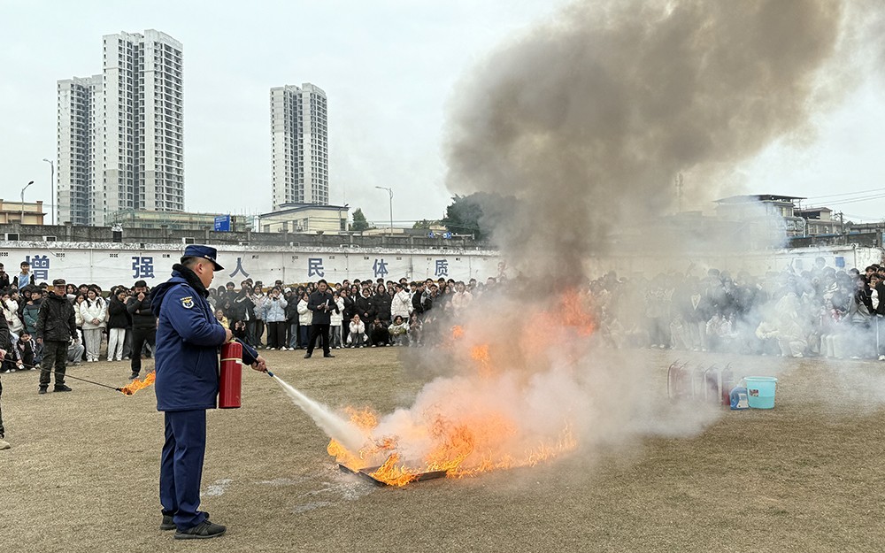 在消防员的指导下,学生代表们纷纷上前亲身体验灭火操作。面对熊熊燃烧的模拟火源,学生们略显紧张却又不失镇定,他们按照所学步骤,准确地拿起灭火器,拔掉保险销,对准火焰根部喷射,成功将火扑灭。这一实践环节不仅增强了学生们的动手能力,更让他们在实战中掌握了灭火技能,为应对可能发生的火灾事故增添了一份保障。