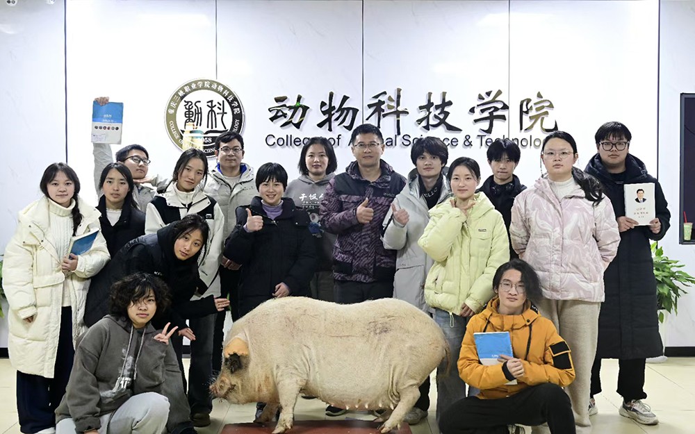 培训现场针对重庆本土保种荣昌猪进行数据采集