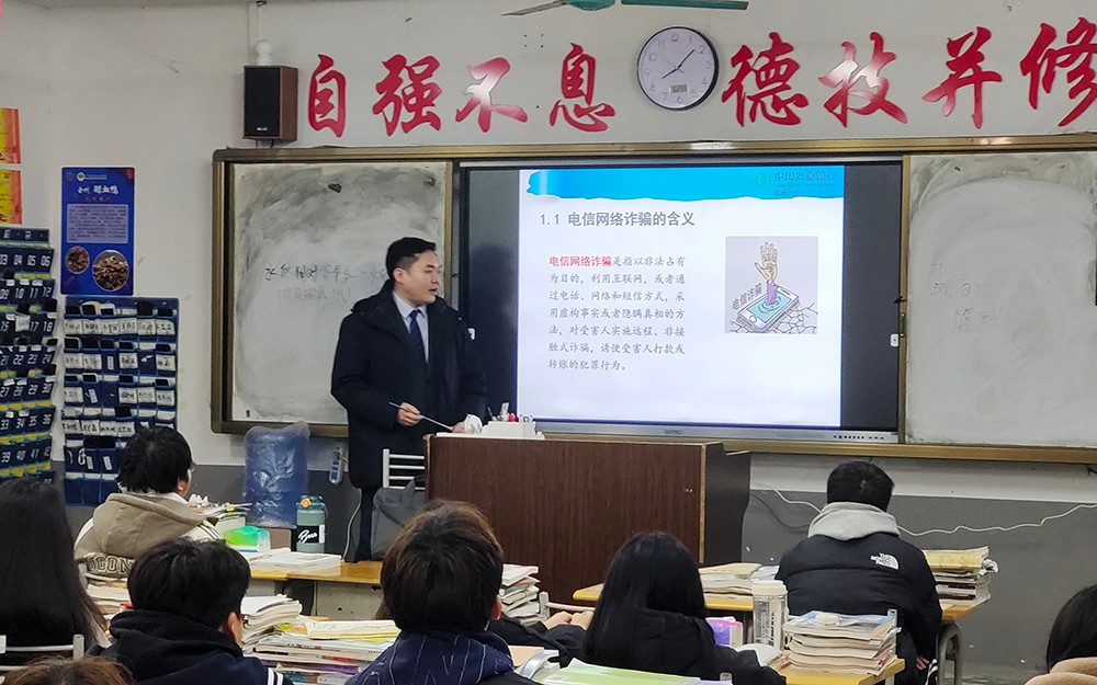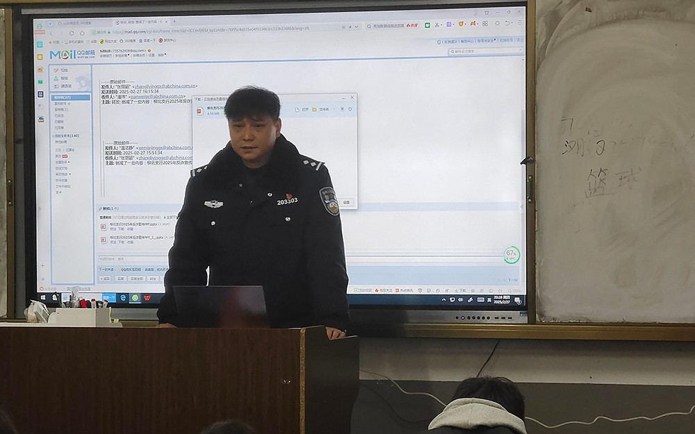为了进一步增强师生安全防范意识,营造良好的校园学习生活氛围。2月27日,学校联合柳北区沙塘派出所反诈中心和中国农业银行沙塘支行在5006教室开展了“反电诈进校园”主题宣讲活动,综合244班全体同学参加。