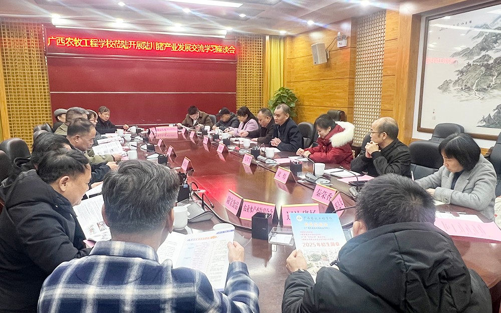 3月6日,校党委书记、校长蒋漓生一行应邀赴陆川县人民政府参加政行企校合作座谈会。陆川县人大常委会党组成员、副主任、县总工会主席陈谨同志,陆川县副县长崔小喆同志,陆川县农业农村局领导,陆川县陆川猪养殖协会领导和相关企业负责人出席座谈会。